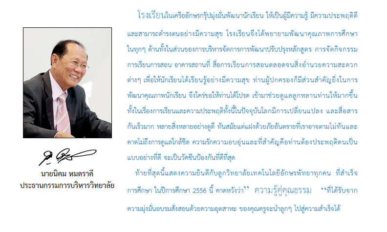 เปิดรับสมัครนักเรียน ระดับชั้น ปวช.และ ปวส. ปีการศึกษา 2562 สมัครเรียนได้ที่ วิทยาลัยเทคโนโลยีอักษรบริหารธุรกิจ (บ้านฉาง) หรือ สอบถามข้อมูล โทร. 038-604741 ต่อ 103 วิทยาลัยเทคโนโลยีอักษรบริหารธุรกิจ ได้ทำความร่วมมือทางวิชาการกับมหาวิทยาลัยศรีปทุม เปิดรับสมัครระดับปริญญาตรี