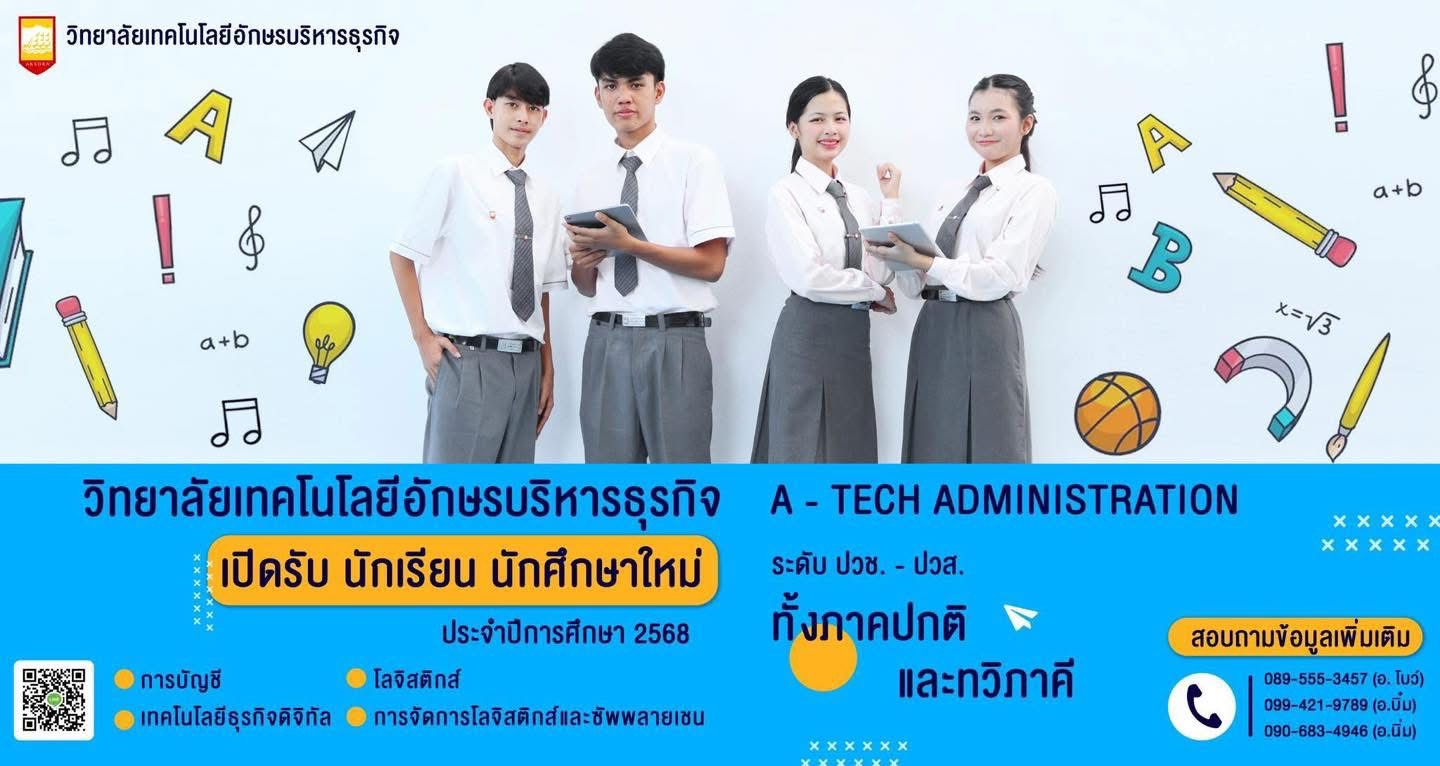 เปิดรับสมัครนักเรียน ระดับชั้น ปวช.และ ปวส. ปีการศึกษา 2568 สมัครเรียนได้ที่ วิทยาลัยเทคโนโลยีอักษรบริหารธุรกิจ (บ้านฉาง) หรือ สอบถามข้อมูล โทร. 038-604741 ต่อ 103